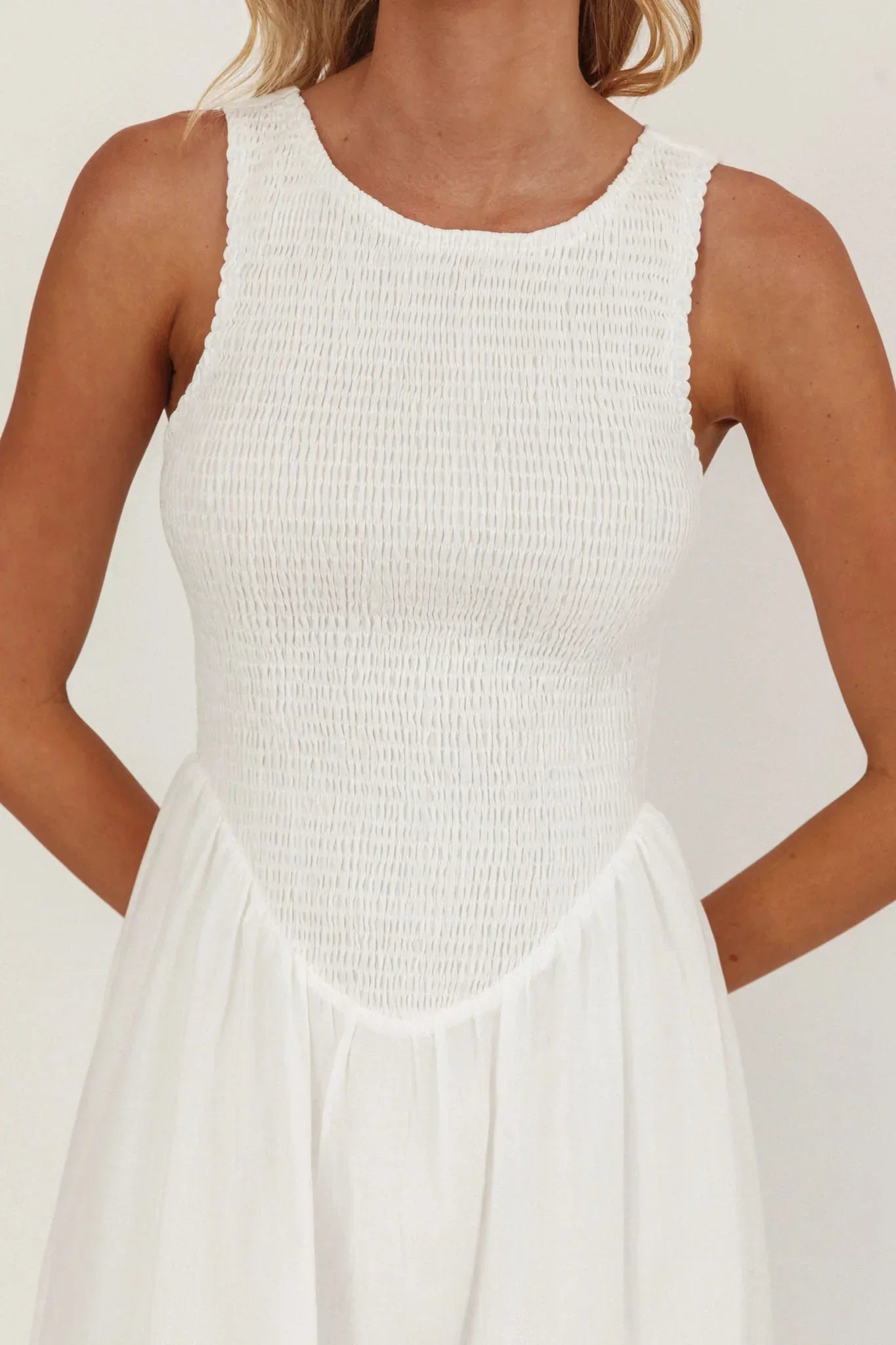 A charming midi dress designed for sunny days and special moments. The shirred bodice offers a flattering fit, while delicate lace inserts add a touch of romantic detail. Perfect for brunches or garden parties, pair it with sandals for effortless style.