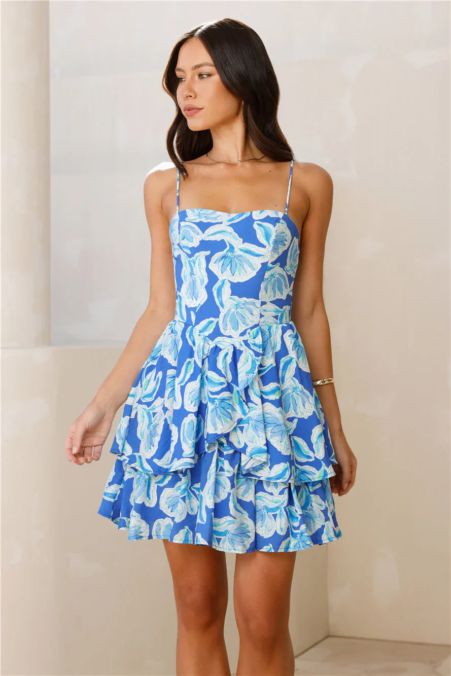 Float through your day in this dreamy mini dress. The flowy tiered frill skirt creates soft feminine vibes with a playful twist perfect for twirling and effortless chic moments.