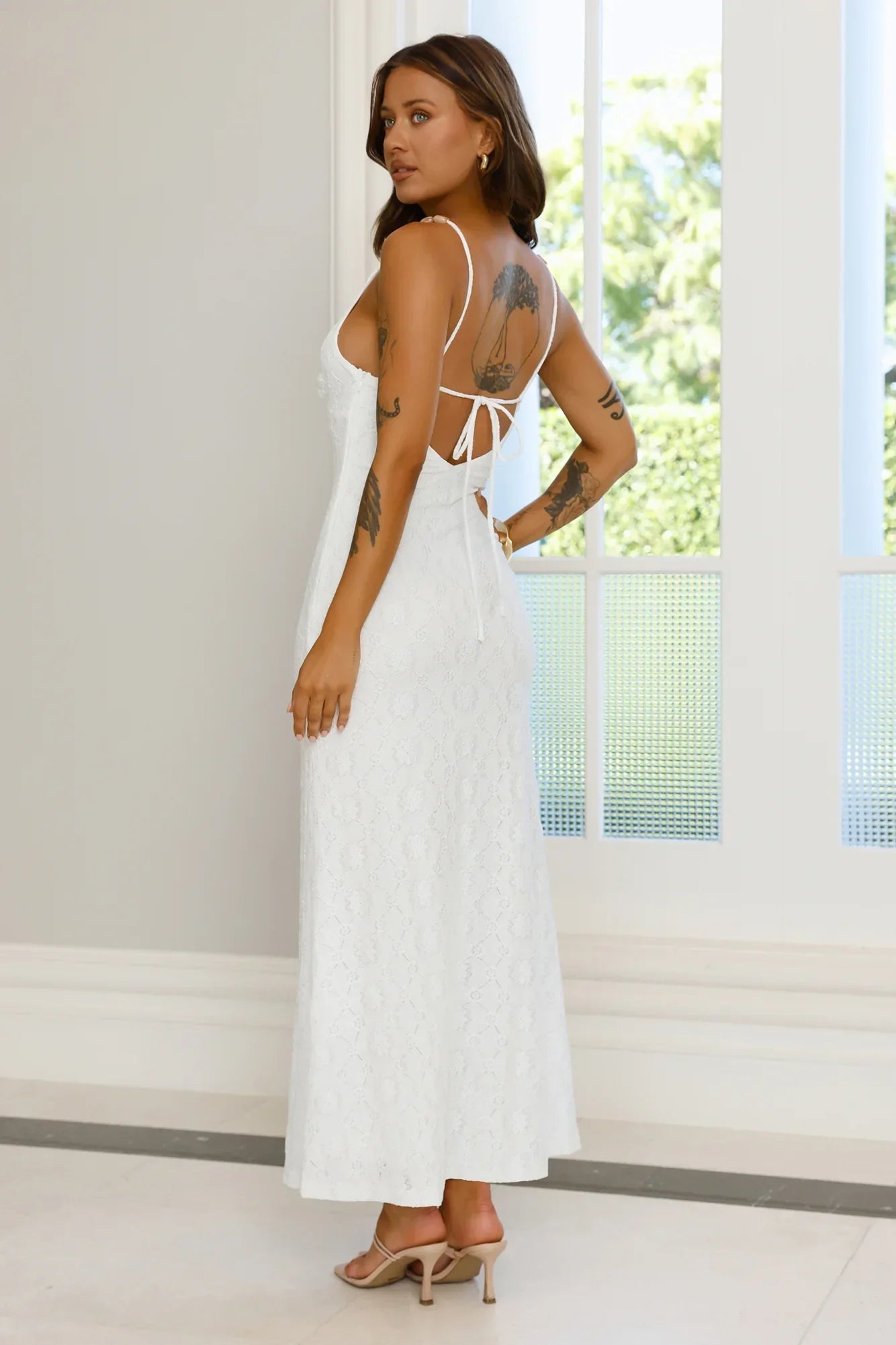 Step into pure elegance with this maxi dress featuring a stretchy fit and textured print. The beaded shoulder straps and flowy silhouette with a tie-back detail create a romantic, feminine look perfect for special occasions.
